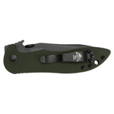Модель CQC-5K обладает формой клинка Clip Point, которая благоприятно сказывается на качестве реза. Покрытие Black-Oxide защищает лезвие от потертостей и придает антибликовое свойство. Сталь 8Cr13MOV обладает хорошей коррозионной стойкостью и длительным сохранением режущих свойств. Рамка рукояти стальная, накладки изготовлены из текстурированного пластика G-10. На обухе ножа в области осевого винта расположен вэйв (плавник). Это запатентованная система ускоренного ручного открытия от компании Emerson. Суть ускоренного открытия состоит в следующем. Во время вытаскивания ножа из кармана плавник (вэйв) цепляется за край ткани, тем самым удерживая лезвие, в это время рукоять при помощи осевого винта проворачивается относительно неподвижно зафиксированного клинка, по инерции открывая нож. Для традиционного открытия на обухе предусмотрен шпенек в виде диска.