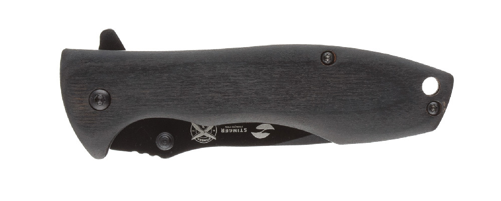 Нож складной Stinger, 80 мм, (чёрный), материал рукояти: сталь/дерево пакка (чёрный)