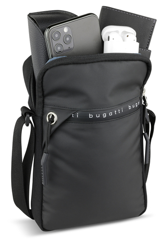 Сумка через плечо BUGATTI Blanc Delight, чёрная, нейлон RPET600D/тарпаулин/полиэстер, 16х4х23 см, 1 л (49450401)