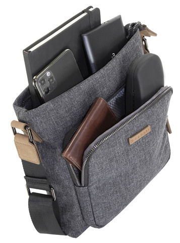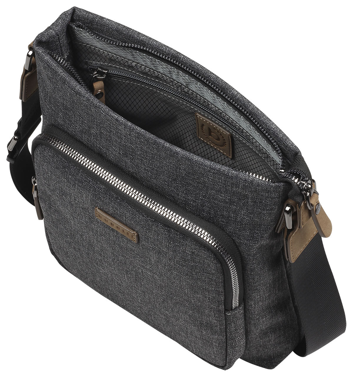 Сумка наплечная мужская BUGATTI Luce, серая, полиэстер, 24х5х25,5 см (49650049)
