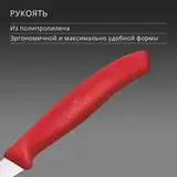 Длина лезвия - 6 см. Предназначен для декорирования, очистки и измельчения овощей и фруктов.