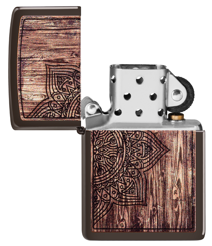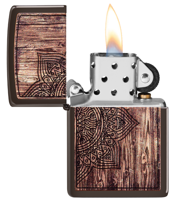 На этой новой зажигалке модельного ряда Brown на деревянном фоне выгравирована мандала - религиозный схематический символ вселенной в индуизме и буддизме. Мандалы составлены из уравновешивающих друг друга визуальных элементов, символизирующих единство и гармонию. Рекомендуем взять себе и ближайшим друзьям по паре экземпляров. Поставляется в подарочной коробке. Для оптимальной работы рекомендуется использовать только оригинальное топливо Zippo.