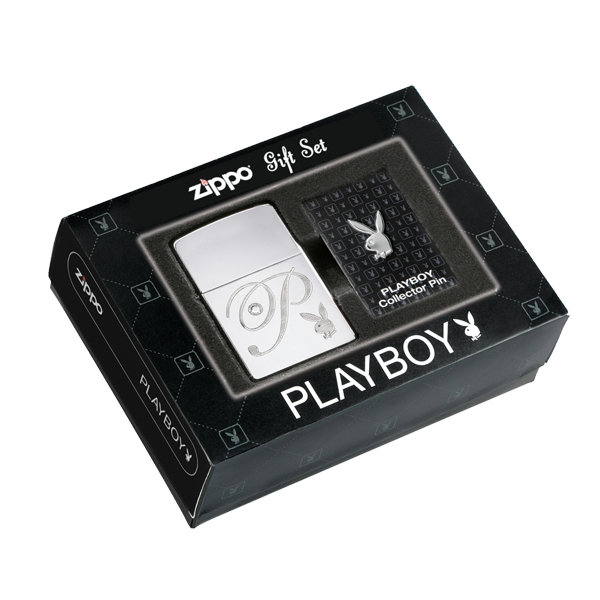 • Настоящая ветроустойчивая зажигалка Zippo с гравировкой фирменного знака "Play Boy" и буквы "P"