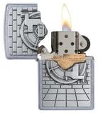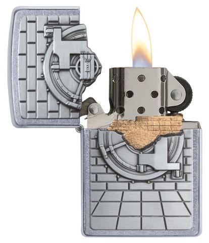 Чтобы взломать денежное хранилище и ощутить восторг от успешного ограбления банка, достаточно лишь открыть крышку этой удивительной зажигалки. Замки и затворы сейфовой двери филигранно выгравированы на объёмной хромированной эмблеме. За стенками крышки скрываются слитки золота и золотые монеты!
