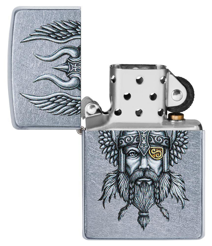 Этот викинг с поистине нордическим характером впервые захватил плацдарм на борту зажигалки Street Chrome™. Художественно одаренные дизайнеры Zippo продолжают радовать эффектными и оригинальными работами, как, к примеру, на этой модели ветроустойчивой зажигалки. Изначально проект нарисован от руки карандашом и чернилами, после чего тщательно перенесен в цифровой вид с сохранением филигранной детализации и игры светотени при помощи технологии Zippo для нанесения цветных изображений. Поставляется в подарочной коробке. Для оптимальной работы рекомендуется использовать только оригинальное топливо Zippo.