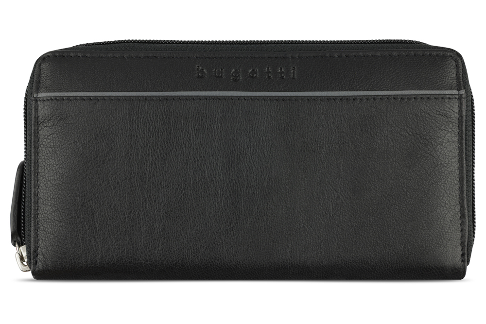 Кошелёк женский BUGATTI Banda, с защитой данных RFID, чёрный, кожа козы/полиэстер, 18,5х2х10 см (49133601)