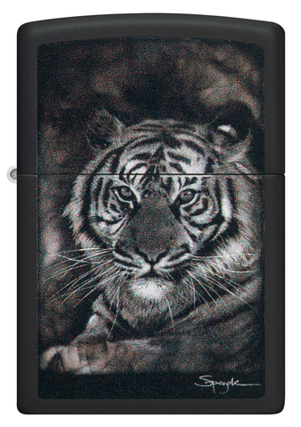 Известный во всем мире как художник огня, Стивен Спазук при помощи техники фюмажа создает потрясающие и мастерски замысловатые сцены, используя только пламя зажигалки. При помощи процесса цветного изображения на эту зажигалку Black Matte перенесен один из известных дизайнов Спазука – величественный тигр.